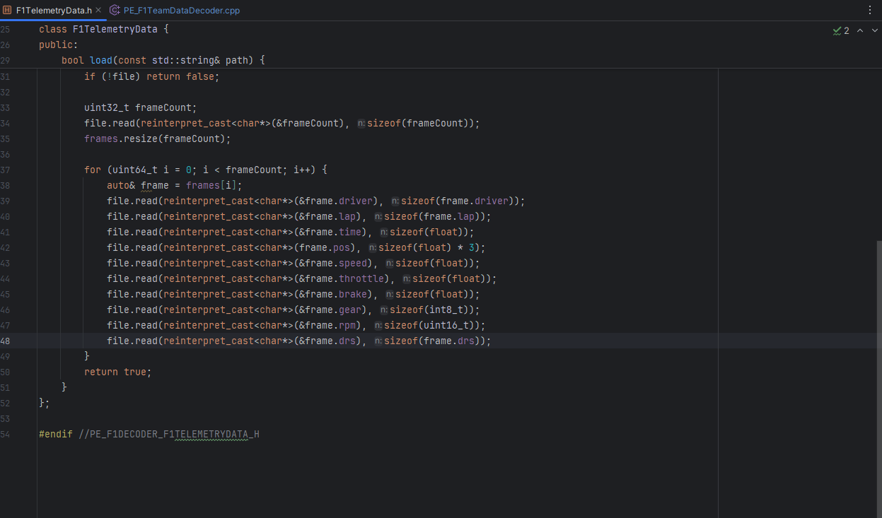 As a fan of F1, I have always wanted to play around with race data inside of Houdini and come up with interesting visualizations and simulations. The problem is that F1 data can be very large and storing or interpreting it over time can be computationally costly. A single race contains thousands of data points on everything for engine rpm to air temperature. There is also a need to preserve the high level of precision in the data set. My solution is to transform the output from the database into binary. I got my inspiration when researching the WAV file header, which does a similar thing with audio data.
